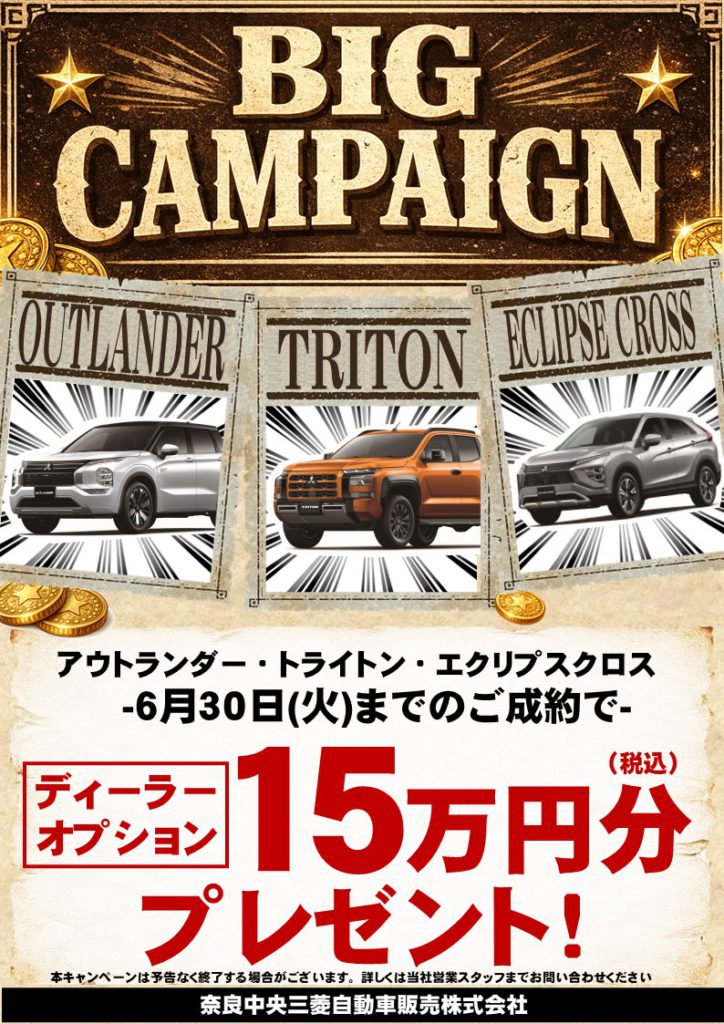 【今だけ】15万円分オプションプレゼント!人気3車種BIGキャンペーン